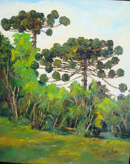 A paisagem paranaense entrou na minha vida no ano de 1976, quando fui pintar ao ar livre acompanhado de Sidney Mariano, era um local próximo onde eu morava, paisagens simples com casa de madeira antiga e dois pinheiros ao lado.